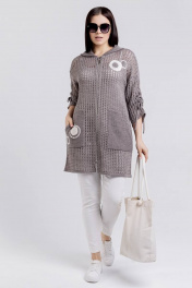 Жакет с аппликацией и капюшоном из вязаного материала BONADI М-1514 капучино