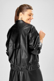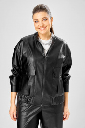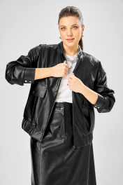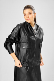 Длина куртки – 62 см Длина рукава – 50 см Стильный женская куртка свободного силуэта, из эко-кожи. Застегивается на молнию, по переду накладные карманы с клапаном и декоративной кнопкой. Головина оформлена воротником стойка. По спинке отрезная кокетка с клапаном. Рукава со спущенной поймой, по низу притачной манжет с застежкой на кнопки. По низу куртки, притачная планка с резинкой. Куртка на подкладке