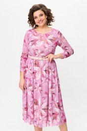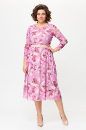 Летнее платье из сетки с кокетками и ремнем Bonna Image 888 розовый