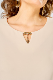 Элегантное женское платье, выполнено из двух видов ткани. Лиф из плательной ткани, горловина круглая с декоративным элементом по центру, по низу лифа ответная складка, по переду низ асимметричный, рукава втачные, по низу декоративный элемент с пуговицей. Юбка платья из шифона, расширенная со складками, на подкладке.