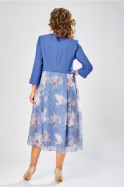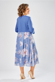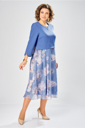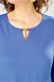 Элегантное женское платье, выполнено из двух видов ткани. Лиф из плательной ткани, горловина круглая с декоративным элементом по центру, по низу лифа ответная складка, по переду низ асимметричный, рукава втачные, по низу декоративный элемент с пуговицей. Юбка платья из шифона, расширенная со складками, на подкладке.