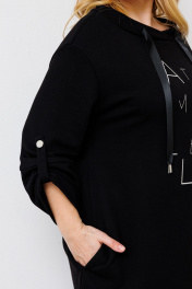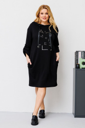 Базовое трикотажное платье с акцентом по переду. Рукав длинный, можно подвернуть на пату. В боковых швах расположены карманы. Крой платья скроет все недостатки, при этом не сковывая ваши движения. Печать по переду выполнена "серебрянной пленкой". Она не облезет после стирки.