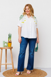 Белая хлопковая блузка с коротким рукавом и яркой вышивкой BRELA 2339 медуза_белый