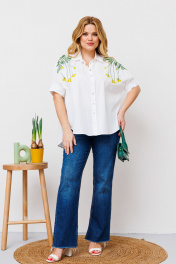Белая хлопковая блузка с коротким рукавом и яркой вышивкой BRELA 2339 медуза_белый - фото 1
