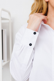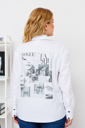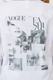 Хлопковая блузка полуприлегающего силуэта. Застежка на петли-пуговицы. По спинке выполнен авторский принт в виде "коллажа из журналов"