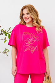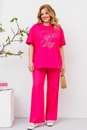 Комплект футболка и льняные брюки с шнурком и карманами BRELA 2357 фуксия-фуксия