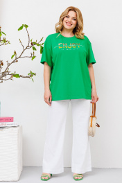 Комплект майка и льняные брюки с приятной печатью BRELA 2358 зеленый-белый