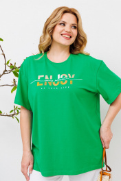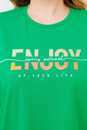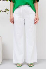Комплект женский состоит из футболки и брюк на резинке. Базовая женская футболка. Крой футболки свободный, оверсайз.Вырез горловины круглый. Рукав до локтя. Линия плеча спущенная.Футболка выполнена из хлопкового трикотажного полотна.Трикотаж не просвечивается, не деформируется после стирки, легко гладится.По переду выполнена авторская печать в виде надписи “enjoy” переливающейся фольгой. Длина - 70 см Льняные брюки свободного кроя. Пояс на резинке, для удобства в носке в пояс вставлен шнурок для регулирования обьема по талии. Посадка брюк - высокая. По переду расположены карманы с наклонным входом. По низу широкая подгибка для возможности коррекции по длине. Брюки с хорошей посадкой, в этом заключается их секрет универсальности и возможности носить их девушкам с любым типом фигуры.Идеальные брюки для летней жары, в них ваша кожа будет дышать. Они выполнены из мягкого льна с вискозой. Отличный вариант, как для городского лета, так и отдыха на море.Лен хорошо поглощает влагу, не вызывает аллергии, обладает высокой степенью воздухопроницаемости. Ткань не просвечивается, и не катается после носки. Длина изделия: 107 см Длина шагового: 82 см Ширина брюк по низу: 27 см Ширина пояса: 4 см