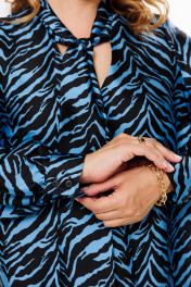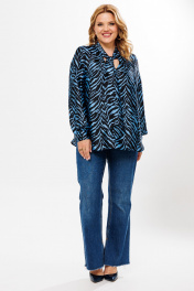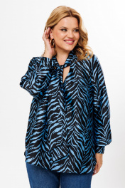 Демисезонная синяя блузка из шифона с завязками BRELA 2373.1 принт_зебра