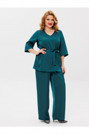 Блуза и брюки нарядный комплект из струящейся ткани BRELA 2377.2 изумруд