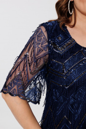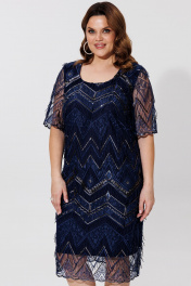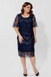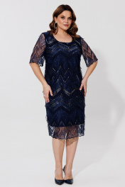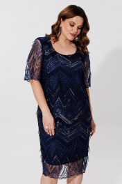 Элегантное двухслойное платье с вышивкой и атласной подкладкой BRELA 2392 синий