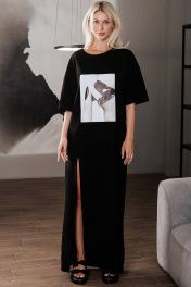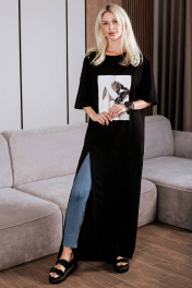 Летнее женское платье-футболка с разрезом черное BUNABOUTIQUE 2102