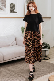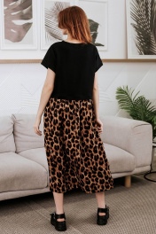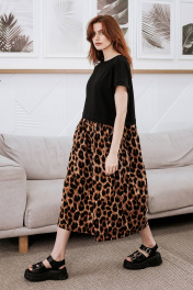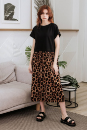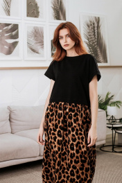Платье летнее женское прямого силуэта со сборкой по талии. Верхняя часть платья изготовлена из натурального хлопкового трикотажа 95% хлопок, 5% эластан, низ из легкой, струящейся 100% вискозы. Размерный ряд платья включает большие размеры, также платье подходит беременным и отлично садится на любой тип фигуры. Короткий свободный рукав не акцентирует внимание на полные руки, а углубленная пройма не позволит оставить следов от дезодоранта на черной ткани. Обратите, пожалуйста, внимание, что платье свободно сидит по талии и если Вы хотите приталенный вариант, заказывайте платье на размер меньше своего.