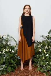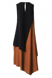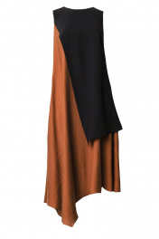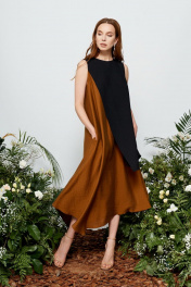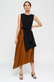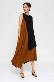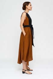 Платье коричневое и черное летнее А-силуэта с асимметричным низом BURVIN 7856-81