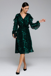 Платье шифоновое полуприлегающего силуэта с воланами Butеr 2863 изумруд