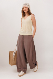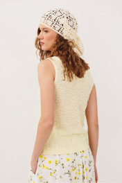 Джемпер трикотажный, без рукавов. По переду и спинке V-образный вырез. По переду нашивка.