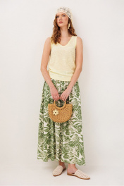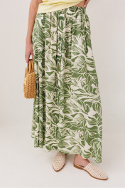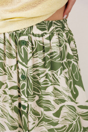 Юбка А-образного силуэта, на притачном отстроченном поясе на резинке. По переду с центральной застежкой на петли пуговицы. Юбка с карманами в боковых швах с наклонным входом, без подкладки.