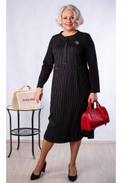Универсальное трикотажное платье должно быть в гардеробе каждой модницы. Наше стильное платье отлично подойдет для работы, офиса, деловых и дружеских встреч, прогулок и свиданий. Платье полуприлегающее, вертикальная полоска зрительно вытягивает фигуру и придает силуэту стройности и утонченности. Оригинальная горловина, нашивка на груди делают образ нескучным. Обратите внимание, что платье хорошо сядет на фигуре, у которой объем груди меньше, чем объем бедер примерно 8 см. Средняя длина изделия по спинке - 113 см. Рост модели на фото - 170 см.