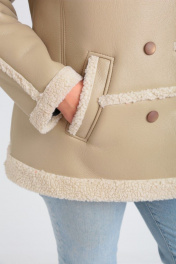 Дубленка женская короткая от Celentano. Выполнена из легкой экокожи с меховой изнанкой. Воротник втачной пиджачного типа. Полочка и спинка отрезные чуть ниже линии талии, на спинке кокетка. Застежка двубортная на петли и пуговицы. Рукав втачной двухшовный. На полочке расположены разрезные карманы в рамку. В модели есть прибавка на верхнюю одежду. Длинна изделия по спинке 73 см, длина рукава 64 см. Изделие выполнено из мягкой и легкой экокожи. Куртка без подкладки и утеплителя, изнанка - экомех. По температурному режиму подходит для еврозимы (до -5), осени и весны (демисезон). Примечание: Перед первой примеркой рекомендуется пройти изнанку (мех) изделия липким роликом для чистки одежды. Рост модели 170 см.