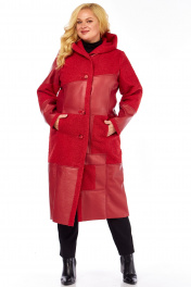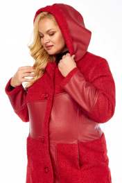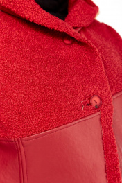 Представляем вам конструкцию, где каждый элемент, каждый шов работает на создание уникального образа. Верхняя часть выполнена из текстурированной меховой ткани, создающей уютный и объемный эффект. Нижняя часть и детали отделки выполнены из гладкой, сияющей экокожи, добавляющей образу динамики и современности. Пальто имеет прямой силуэт, не сковывающий движений и позволяющий вам чувствовать себя комфортно. Свободный крой подчеркивает вашу женственность , отсутствие приталенности позволяет свободно комбинировать пальто с одеждой разного объема, создавая многослойные образы. Капюшон, выполненный из экокожи, не только защищает от ветра и дождя, но и придает образу законченность и выразительность. Застежка на пуговицы обеспечивает надежную фиксацию и позволяет регулировать степень прилегания пальто. Геометричная конструкция визуально вытягивает силуэт, делая фигуру более стройной и изящной. Длина изделия 118 см, дина рукава 64 см. Пальто ""Красная симфония"" – это конструктор вашего настроения! Комбинируйте пальто с разными аксессуарами, создавая образы, соответствующие вашему настроению и стилю. Носите его с ботинками на каблуке для создания элегантного образа или на плоской подошве для создания более расслабленного стиля. Изделие выполнено из высококачественной мягкой экокожи, которая не трескается и не растягивается, в отличие от натуральной кожи. Все молнии на изделии металлические. Куртка без подкладки. По температурному режиму подходит для еврозимы (до небольшого минуса), осени и весны (демисезон). Изделия из экомеха при раскрое оставляют ворсинки. Это не является браком! Перед первой примеркой рекомендуется пройти изнанку (мех) изделия липким роликом для чистки одежды. Рост модели 170 см
