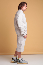 "Мужские широкие льняные шорты от Celentano. Пояс притачной, застежка на петлю и пуговицу и гульфик с молнией. В боковых швах - карманы ""хулиганы"", сзади - накладные карманы. В нижней части шорт сбоку выполнены накладные карманы с клапанами. Длина изделия без учёта пояса по боковому шву 67 см. Шорты выполнены из качественного белорусского льняного полотна (пр-во Орша). Ткань не тянется. Все пуговицы натуральные кокосовые. Наши шорты из натурального льна будут незаменимы для повседневного использования на отдыхе жарким летом. На фото шорты с нашей рубашкой 3024. Также оба изделия можно приобрести костюмом 3029 либо скомпоновать шорты с нашей рубашкой 3023 или пиджаком 3022."