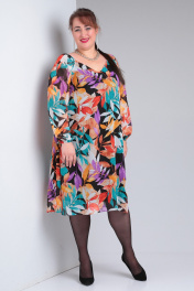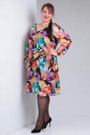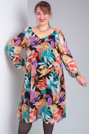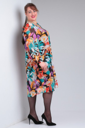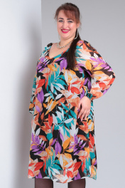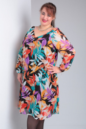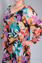 Нарядное платье от Celentano из шифона длиной миди. На полочке и спинке V-образный вырез, полочка цельная с нагрудными вытачками. Рукав реглан, длинный, низ на резинке. Полочка цельная. Ткань шифон, подкладка текстильная вискоза. Длина платья от плеча 117 см, длина рукава от горловины 70 см. Рост модели 178 см, размер 58.