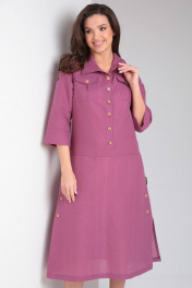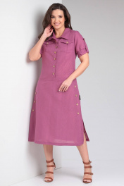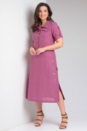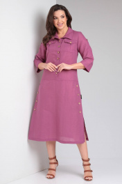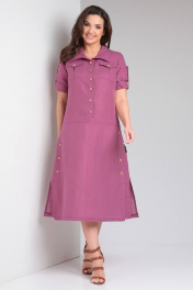 Льняное платье в стиле сафари с карманами и разрезом Celentano lite 5025.2 малиновый