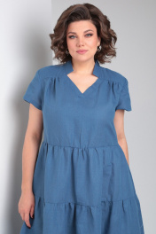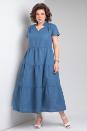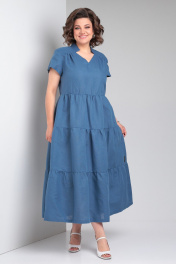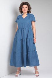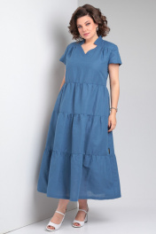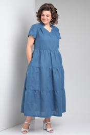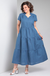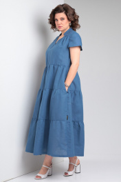 Льняное платье макси с воланами и карманами Celentano lite 5028.2 синий