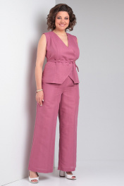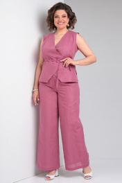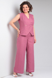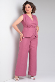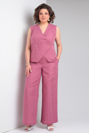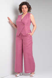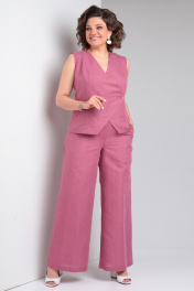 Льняной костюм 2-ка из палаццо брюк и жилета Celentano lite 5032.1 малиновый