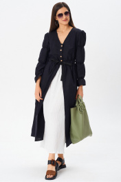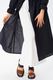 Льняной дуэт от Celentano,перед вами не просто платье – это тщательно продуманный конструктор, позволяющий создавать множество образов, оставаясь верной своему стилю и ценя комфорт превыше всего. Встречайте льняной кардиган и съемную вискозную юбку (крэш) – идеальный дуэт для лета в городе и на природе. Эта универсальная вещь станет вашим любимым спутником летом. Носите его как легкое платье, либо как самостоятельные предметы Инженерный подход к элегантности: • Кардиган из дышащего льна: Свободный крой, V-образный вырез и застежка на кокосовые пуговицы до талии – все продумано для создания расслабленного и стильного силуэта. Уникальные рукава с присборенными элементами и деликатной манжетой на резинке – результат кропотливой работы конструкторов, стремящихся к идеальному балансу формы и функциональности. Внутренние карманы, незаметно интегрированные в швы, добавляют практичности и комфорта. • Юбка из вискозы крэш: Эта съемная юбка – Прямой силуэт, пояс на резинке, длина макси и эффект "крэш" создают завораживающий визуальный эффект, придавая образу динамику и легкость. Вискоза обеспечивает невероятную мягкость и приятное ощущение на коже. Длина кардигана 130см. Длина рукава 64см. Длина юбки- 92см. Носите кардиган как самостоятельный элемент, сочетая его с брюками, джинсами или шортами. Используйте юбку в качестве основы для создания множества других образов, комбинируя ее с топами, блузками и свитерами. Вместе они образуют гармоничное и стильное платье, идеально подходящий для любого случая. • Лен + вискоза: союз комфорта и стиля: Сочетание натурального льна и мягкой вискозы обеспечивает оптимальный баланс между воздухопроницаемостью, тактильными ощущениями и эстетикой. Эти ткани легки в уходе и сохраняют свой первозданный вид на протяжении долгого времени. • Сознательный выбор: Мы уделяем особое внимание качеству материалов и пошиву. Это платье создано для того, чтобы служить вам долгие годы, радуя своим комфортом и безупречным стилем. Платье выполнено из качественного белорусского льняного полотна (пр-во Орша). Ткань не тянется. Все пуговицы на платье натуральные кокосовые. Инструкция по созданию неповторимого образа: 1. Для расслабленного дня: Наденьте платье, завяжите пояс и добавьте сандалии на плоской подошве. 2. Для вечернего выхода: Замените сандалии на элегантные босоножки, добавьте клатч и украшения. 3. Для создания многослойного образа: Наденьте юбку с топом и добавьте кардиган в качестве легкого пальто. 4. Экспериментируйте: Подчеркните свою индивидуальность, добавляя в образ различные аксессуары и обувь. Уход за льняным платьем: • Рекомендуется ручная стирка или машинная стирка в деликатном режиме при температуре не выше 30°C. • Используйте мягкое моющее средство для льна. • Не отбеливайте. • Сушите в расправленном виде, избегая прямых солнечных лучей.