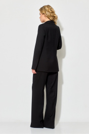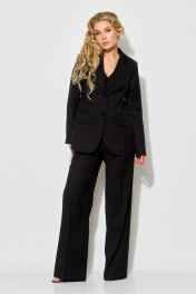 Комплект двойка: жакет и брюки. Жакет полуприлегающего силуэта, втачного покроя, с центральной застёжкой на пуговицы. Жакет с классическим пиджачный воротником, с действующими карманами с клапанами. Край борта жакета с красивым дизайном линии закругления. Рукав с шлицей и пуговицами. Прибавка к обхвату груди умеренная , параметры готового изделия по размерам указаны в таблицах. Брюки с посадкой на поясе на линии талии. Силуэт брюк прямой от бёдер. По переду у талии расположена мягкая складка. У бокового шва расположены наклонные карманы. Линия низа брюк прямая и длина может легко корректироваться. Застёжка на пуговицу на поясе и молнию в среднем шве переда. Длина жакета по середине спинки: 68 см. Длина брюк от линии талии 106 см. Фурнитура может отличаться от фото. Ткань с высоким содержанием вискозы будет сохранять хороший внешний вид и держать форму изделия.