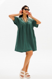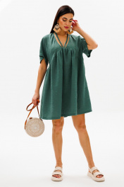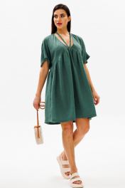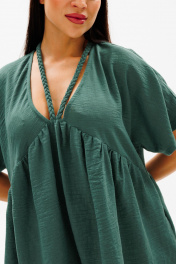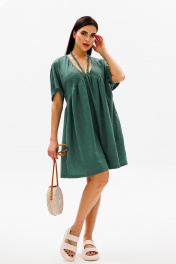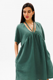Зеленое платье трапеция с косыми подрезами и завязывающимися шнурками COCKTAIL 114/2
