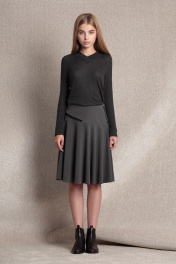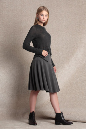 Трикотажная однотонная юбка полусолнце на талии, длиной 60 см для размера 42 (для других размеров длина может незначительно отличаться), с отрезной кокеткой, декоративной тесьмой и застежкой на массивную металлическую молнию в левом боковом шве. Описание материала: Смесовый материал юбки с добавлением вискозы отличный базовый вариант для любого гардероба. Юбка из серого трикотажа практичная в эксплуатации, не маркая, смотрится стильно, идеально подходит для нарядных выходов и ежедневного использования, обладает достаточной воздухопроницаемостью.