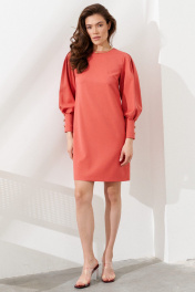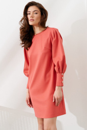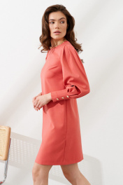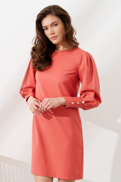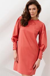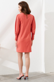 Платье длиной 87 см. Рукав втачной объемный со складками по окату длиной 60 см. Низ рукава с цельнокроеной манжетой встречными складками и декоративными пуговицами. Спинка с разрезом по горловине. Застежка по спинке на потайной крючок.