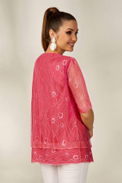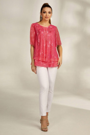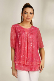 Легкая и нежная блузка свободного кроя, обеспечивающая максимальный комфорт. Изготовлена из изысканного кружева, которое придает ей воздушность и женственность, модель на подкладке. Декоративная складка по передней полочке придает блузке интересный акцент. Кружевные полупрозрачные рукава делают эту модель нарядной. Круглая горловина обеспечивает удобство и элегантный силуэт.