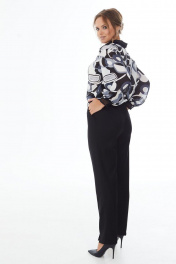 Блузка прямого силуэта с эффектным принтом из ткани по составу 100% вискоза. Широкий рукав втачной три четверти, по низу довяз. Воротник отложной. Планка декорирована тесьмой, застегивается на петли-пуговицы.