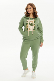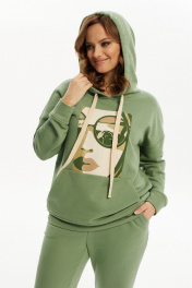 Демисезонный трикотажный джемпер с принтом и карманом Condra 16217 оливка