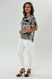 Футболка свободного силуэта из трикотажного вискозного полотна. Округлая горловина делает футболку удобной и приятной для ношения. Рукав оригинального кроя придает футболке уникальность. В боковых швах разрезы, спинка длиннее переда. По переду, в области груди имитация накладного кармана с клапаном. Длина рукава регулируется патой. Данная модель футболки- незаменимая вещь как в спортивном образе, так и в повседневном, и да же в нарядном.