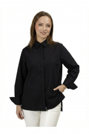 "Блузка рубашка черная от CONDRA DELUXE – идеальный выбор для офисного гардероба. Блузка из хлопковой ткани прямого силуэта со стильной вышивкой. Воротник отложной, застегивается на петли-пуговицы по планке до низа. Спинка на кокетке. Рукав втачной длинный с манжетой. В боковых швах разрезы. Эта блузка отлично сочетается как с классическими брюками или юбкой, так и с джинсами, создавая элегантные и современные образы."