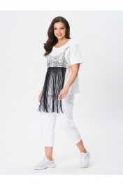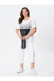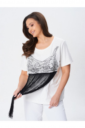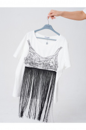 Футболка свободного силуэта из трикотажного хлопкового полотна представляет собой универсальную и стильную одежду для различных ситуаций. Спереди футболки присутствует оригинальный вышитый рисунок. Горловина футболки округлая, что придаёт ей изящность и делает носку комфортной. Рукав короткий, классического кроя.