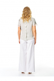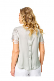 Блузка женская нарядная с кружевом — воплощение элегантности и утонченного стиля. Эта модель прямого силуэта станет жемчужиной вашего гардероба. Главная особенность блузы — изысканное кружевное полотно, из которого выполнены передняя часть и короткие втачные рукава. Такое сочетание фактур придает образу особую женственность и делает его по-настоящему праздничным. Продуманные детали для вашего комфорта: Актуальный крой: Модный фигурный низ с удлиненной спинкой и укороченным передом (до линии бедра) позволяет носить блузку как навыпуск, так и частично заправленной, создавая современные образы. Идеальная посадка: Нагрудные вытачки обеспечивают правильное прилегание по фигуре, подчеркивая силуэт, но сохраняя свободу движений. Изящный акцент: Застежка на петли и пуговицы расположена по спинке, что добавляет изделию шарма и делает образ завершенным со всех ракурсов. Чистота линий: Горловина без воротника обработана аккуратной окантовкой, что подчеркивает линию шеи и позволяет дополнить наряд любимыми украшениями. Эта кружевная блузка идеально подойдет для торжественных мероприятий, свиданий или офисных будней, когда хочется добавить в образ немного романтики. Она прекрасно сочетается с классическими брюками, юбками-карандаш и даже базовыми джинсами. Выбирайте премиальное качество и будьте в центре внимания!