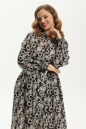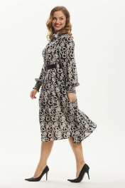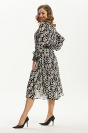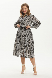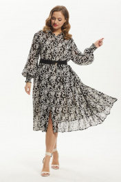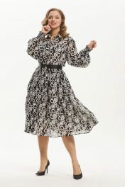 Платье шифоновое миди с воротником и ремнем Condra 4372 черно-белый - фото 1