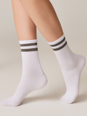 Хлопковые носки с яркими полосками из люрекса смотрятся так стильно и оригинально, что вам не захочется прятать их под одеждой. Смело носите трендовые носочки ACTIVE в стиле спорт-шик и с удовольствием подчеркивайте свою индивидуальность.