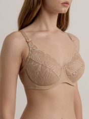 Классическая серия белья Aura создана из неэластичного функционального трикотажа и кружева с растительным рисунком. Белье эффектно подчеркивает женственные линии и гарантирует безупречную поддержку, необходимую для обладательниц пышных форм. • мягкая чашка c двойным диагональным членением • нижняя деталь чашки на хлопковой подкладке • на каркасах • регулируемые бретели • фактурное кружево с растительным рисунком • широкий размерный ряд • безупречная поддержка и абсолютный комфорт.