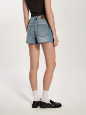 Джинсовые шорты с эффектом потёртостей и необработанным краем – это стильная модель, которая поможет создать интересный образ для активных прогулок, или яркий бунтарский наряд для вечеринки. • комфортная посадка • длина mini • мягкий деним с высоким содержанием хлопка • шлёвки для ремня • 5 функциональных карманов • необработанный край • контрастная строчка • эффект потёртостей • фурнитура цвета антик • для сохранения формы шортов и насыщенности оттенка соблюдайте рекомендации по уходу • идеальная модель для экспериментов со стилем Состав: 99% хлопок, 1% эластан Цвет: light blue Рост 170: длина по внутреннему шву 8 см