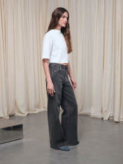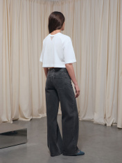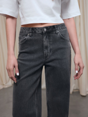 Чёрные джинсы wide leg с двойными шлёвками – классика в тандеме с экспериментом. Широкий крой не сковывает движения, дарит комфорт, а двойные шлёвки помогают создавать смелые и уникальные образы: комбинируйте ремень с верёвкой или лентой – варианты стилизации могут быть разнообразны. • wide leg – широкий крой от бедра • средняя линия талии • плотный деним чёрного цвета • 5 функциональных карманов • эффект потёртостей • шлёвки: нижняя (ремень до 1.5 см), верхняя (ремень до 4 см) • классическая обработка низа с эффектом потёртостей • застёжка на металлическую пуговицу и молнию, скрытую планкой • широкий размерный ряд (от XXS до XL) • для сохранения формы джинсов и насыщенности оттенка соблюдайте рекомендации по уходу • стильная основа для выразительных образов. Рост 164: длина по внутреннему шву 77см Рост 170: длина по внутреннему шву 82 см