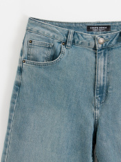 Джинсы straight с лёгким зелёным тинтом – удлинённая модель, которая прекрасно подойдёт девушкам с разным типом фигуры. Благодаря прилеганию в области бёдер, прямому крою и длине джинсы визуально вытягивают силуэт и выгодно подчёркивают фигуру. • модель ultra-long • straight – прямой крой • средняя линия талии • плотный синий с зелёным тинтом • эффект потёртостей • 5 функциональных карманов • контрастная строчка • застёжка на металлическую пуговицу и молнию, скрытую планкой • классическая обработка низа с эффектом потёртостей • для сохранения формы джинсов и насыщенности оттенка соблюдайте рекомендации по уходу • идеальный вариант для casual-образов. Рост 164: длина по внутреннему шву 80 см Рост 170: длина по внутреннему шву 85 см