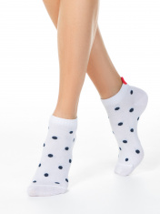 Короткие хлопковые носки с пикотом-«сердечком» на резинке созданы специально для девушек, живущих активной жизнью. Идеально подходят под спортивную обувь.