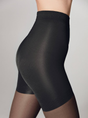 Эластичные шелковистые колготки с плотными утягивающими шортиками моделируют фигуру, уменьшая объём талии, бедер и ягодиц. Хлопковая ластовица, плоский шов, уплотненный мысок.