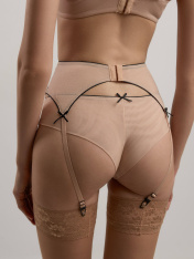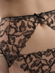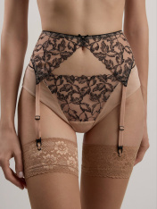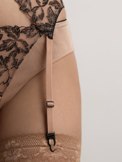 Серия белья Nostalgie выполнена из мягкого сетчатого полотна в оттенке nude и эксклюзивной авторской вышивки, созданной дизайнерами Conte. Благодаря такому решению нежная сетка словно исчезает на теле, оставляя только воздушный рисунок черного цвета, который выглядит как эскиз изящной татуировки. • пояс для чулок • высокая линия талии • эффект изящных татуировок благодаря авторской вышивке на телесной сетке • регулируемые металлические чулкодержатели • роскошное и соблазнительное дополнение ваших бельевых образов.
